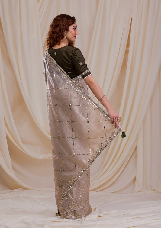 SAVE 40%ZGrey Sequins Chiffon Designer Saree