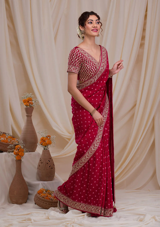 ZOnion Pink Swarovski Semi Crepe Designer Saree